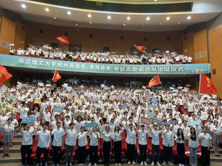 6月10日下午,在距杭州亚运会开幕105天之际,浙江理工大学杭州亚运会、亚残运会赛会志愿者团队出征仪式在浙江理工大学举办。