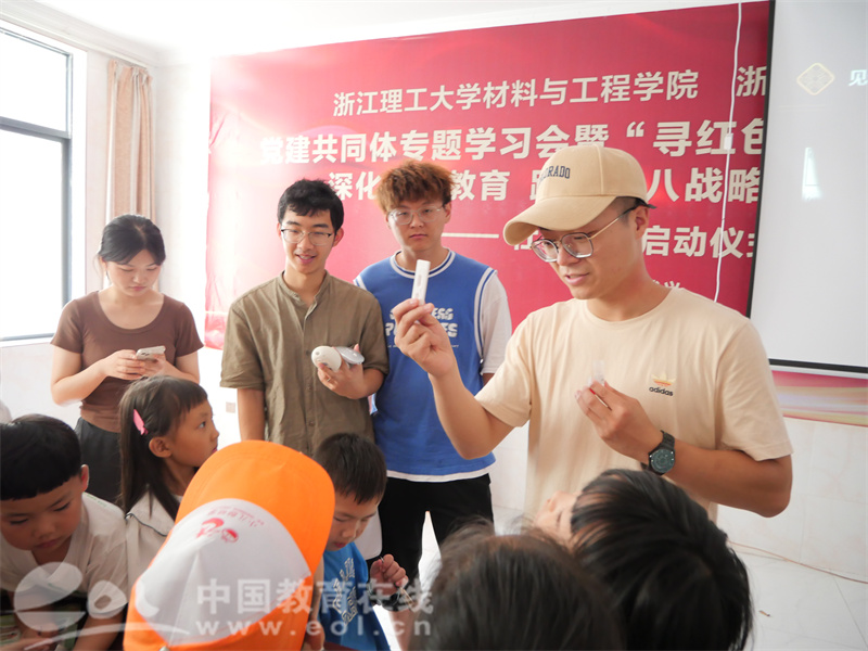 中国教育在线浙江站讯 (编辑 张可宁 通讯员 张姗姗)“大家观察到了吗?‘丝’在甲骨文里是两束蚕丝的象形。《现代汉语词典》里大家看到的‘纯’在造字之初的古义是蚕丝,‘绪’是缫丝时茧子的头,‘组’是用丝绳系起的祖先牌位……甲骨文中,已经出现了‘桑、蚕、丝、帛’等字样,记录了商人种桑、养蚕、制丝、织帛的生活景象。丝绸,丝路上最典型的文化符号,是中华文明智慧的象征,是中华文明传承和传播的使者。”在金华武义县朱王村支教课堂上,浙江理工大学“寻丝探源”实践团成员黄亚峰正在为同学们讲述丝绸文明起源和丝绸文化。