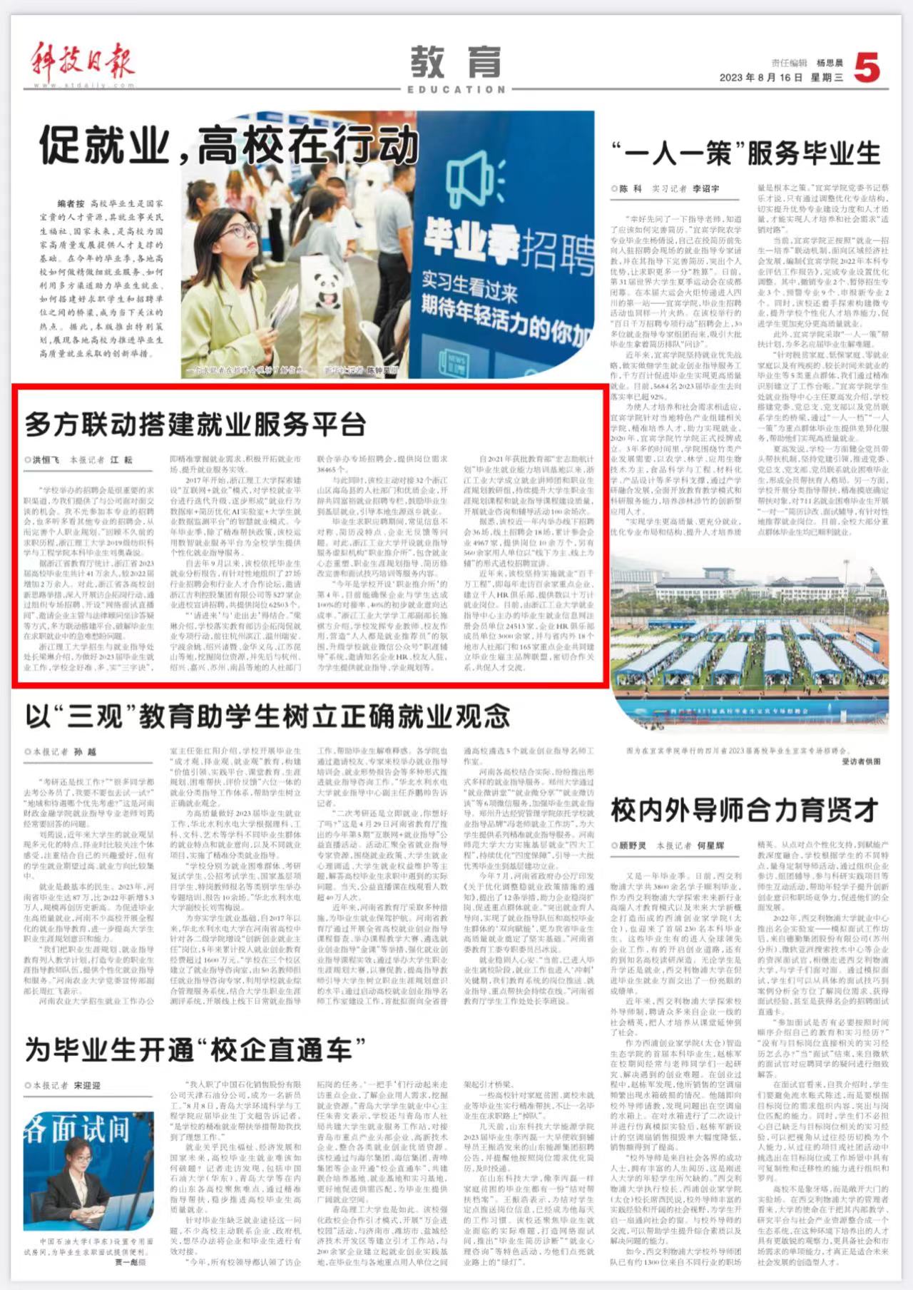 8月16日,《科技日报》(第5版)报道我校念好准、多、实“三字诀”,做好2023届毕业生就业工作。