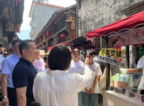 当地的“五廿八大集”与其说是一场商贸活动,不如说是缙云人民记忆深处的乡情寄托。缙云壶镇镇自古商贾云集,贸易兴旺,农历逢四逢九便开市,繁荣的老街商贸文化孕育出“五廿八”这样的大型物资交流会。每年开放时,不止四邻八乡,外省的商客也会千里迢迢赶来参加。这次,“五廿八大集”经八年休市又重新开张,万人空巷,热闹非凡。值此盛会之际,浙江理工大学建筑工程学院的社会实践团将“直播间”搬到街市上,为前路乡的特色农产品直播带货,让“前路山纯”火上“云端”。