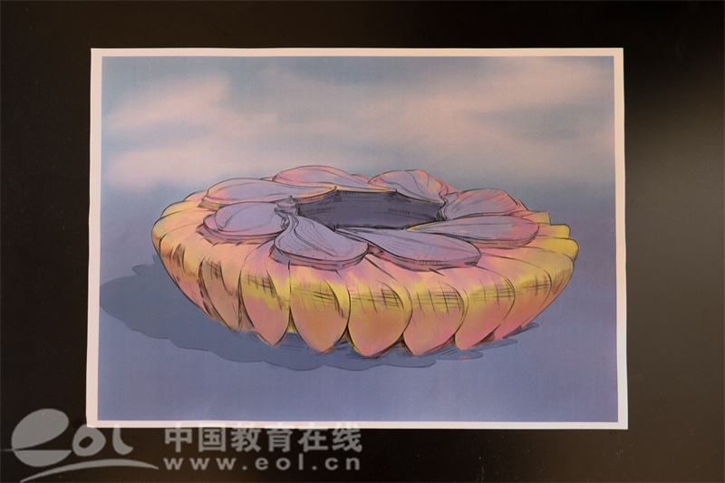 “我从小喜欢绘画,对中国非遗传统技艺掐丝珐琅尤为感兴趣。收到作业要求后,我花费几天时间,通过掐丝、绘画、打磨等工序亲手制作了掐丝珐琅杭州奥体中心体育场-‘大莲花’画,献礼即将举行的杭州亚运会”,来自土木23(3)班冷悦同学兴奋地给大家讲解着自己的作品。