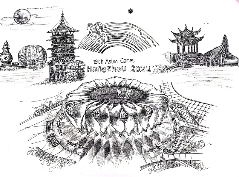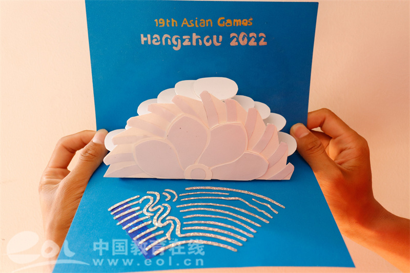 新生作业中还有来自北京、广州、杭州三地同学带来的亚运元素的铅笔画、立体贺卡、剪纸等作品。北京、广州、杭州作为中国三个与亚运结缘的地区,横跨33年的光阴,三地的学生穿越时空,相聚浙江理工大学开启求学之路,同时共同感受亚洲体育传奇带给杭州的魅力,他们也用自己的双手表达了对于杭州亚运会的祝福。