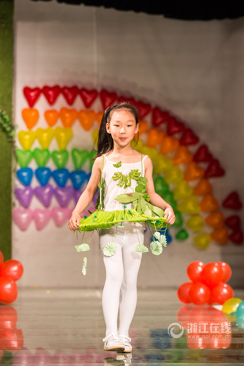 本次活动是为了迎接世界环境日的到来而精心筹备的,由浙江理工大学服装学院携手浙江省教育厅团委联合举办,邀请了近30名小朋友的参与。在正式活动开始之前,大学生们设计师们和小孩子们一起设计并制作了环保主题时装。蔬果、易拉罐、报纸书籍、塑料袋等常见的材料经过大家的匠心巧手的改造,变成小朋友们身上的一件件精美的“盛装”。本次环保秀根据使用材料的不同分为“植物”、“金属”、“重造”、“创作”、“纸衣”五大模块,服装的创意独特结合“模特”的烂漫童真共同组成了这一场别具一格的童装走秀。