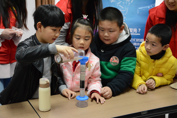 3月22日是世界水日,浙江理工大学理学院大学生科普志愿者围绕“节水,护水,爱水”环保主题,给孩子们上了一堂生动的科普课。