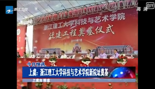 7月7日,浙江电视台名栏目《浙江新闻联播》报道了我校科技与艺术学院在绍兴市上虞区滨海新城举行迁建工程奠基仪式新闻。