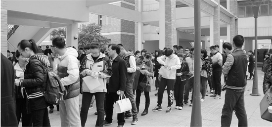 在浙江理工大学,等待入场的考生排成一条长队