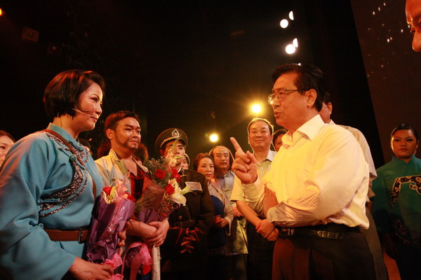 8日晚演出结束后,省领导上台与演员握手并合影。省委书记赵洪祝高度评价了金永玲艺术团的演出,并鼓励艺术团再接再厉,为社会各界群众奉献更多精彩的演出。省长吕祖善观看了9日晚的演出后说,金永玲艺术团为推广红色经典歌剧坚持不懈,用艺术感染群众,用艺术教育青年学生,非常值得鼓励。