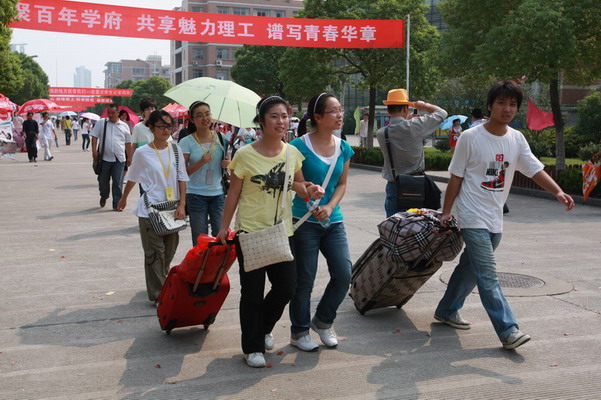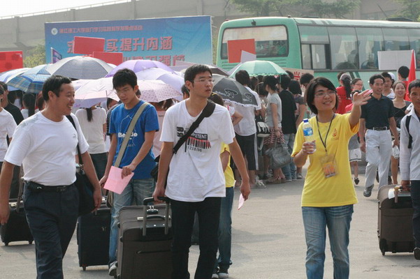 9月6日的浙江理工大学,彩旗飘飘,人声鼎沸,校园里到处洋溢着喜庆、热烈的气氛,4000余名新生陆续走进校园,开始他们新的旅途。注册、缴费、转户口、搬行李,一天的迎新工作忙碌而有序。