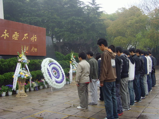 理学院物理系团总支组织党员及入党积极分子在浙江革命烈士纪念馆开展了以“踏先烈足迹 寻革命精神——学习实践科学发展观”为主题的扫墓活动,缅怀烈士的功绩,祭悼烈士的英灵。全体人员还参观了革命烈士纪念馆。在参观的同时拾捡垃圾、礼貌提醒他人勿在馆内抽烟或大声说话,以实际行动表达对烈士的崇敬之情。我校真维斯希望工程爱心社也冒雨到浙江革命烈士纪念馆开展了“缅怀先烈英迹,争做奉献青年”主题活动。外国语学院青协与艺设学院、生科院青协则共同组织志愿者前往浙江辛亥革命纪念馆开展了“清明碑前祭英灵,雨中缅怀宣誓言”的活动。