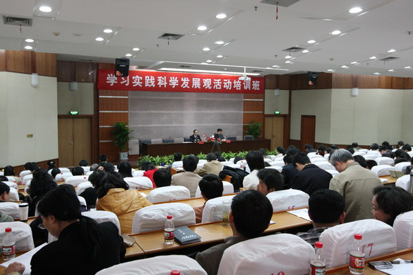 4月8日下午,我校举行了深入学习实践科学发展观活动第四次培训会。校长裘松良作专题辅导报告。报告会由校党委副书记、校学习实践领导小组副组长金瑾如主持。校院两级中心组成员参加会议。