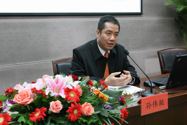 颁奖仪式后,孙伟挺为广大师生作了题为《华孚色纺:一个公务员下海创业的故事、一个传统产业中细分创新的案例》的报告,从就业、创业、创新三方面与在场师生做了互动交流,并勉励同学们干事业要从基层做起,抓住机遇,诚信做人。
