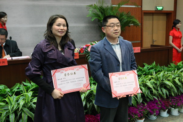 3月25日下午,华孚奖教金颁奖仪式暨大学生就业与创业报告会在我校行政楼二楼报告厅举行。华孚色纺股份有限公司董事长孙伟挺、校党委副书记金瑾如、党委委员陈文兴出席会议。会议由校党委副书记程刚主持。