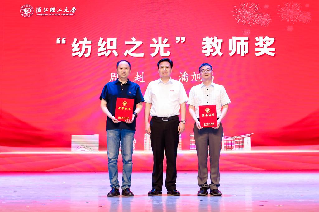 会上,副校长陈爱喜为“纺织之光”教师奖获奖者颁发证书。
