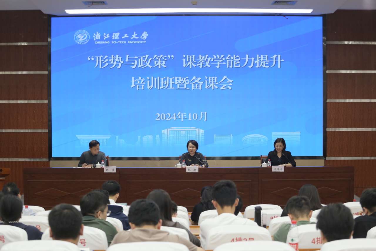 为深入学习贯彻习近平总书记对学校思政课建设的重要指示精神,落实教育部高校思政课堂教学提升行动和浙江省新时代学校思政课建设推进会要求,10月18日下午,浙江理工大学“形势与政策”课教学能力提升培训班暨备课会在行政楼二楼报告厅举行。校党委副书记、省级一流本科课程“形势与政策”负责人姚珺,校党委委员、党委宣传部(教师工作部)部长高丽静出席会议。