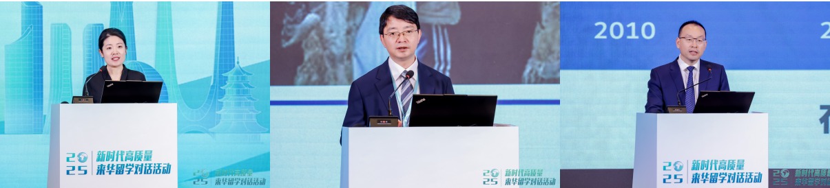 随后,教育部国际司来华留学处处长郑晗、浙江大学副校长周江洪、西安交通大学副校长单智伟分别围绕完善教育对外开放战略,建设具有全球影响力的重要教育中心、高质量来华留学助力教育强国建设、高等教育国际化的建设思考与实践等主题作了主旨报告。