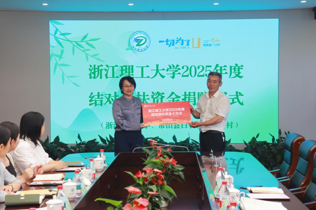 会上,姚珺对常山县白石镇一行表示热烈欢迎。她表示浙江理工大学与白石镇小白石村已经迈入结对帮扶第七个年头,双方在党建联建、科技服务、艺术赋能助力乡村振兴中开展了富有成效的合作。浙江理工大学发挥特色优势资源,通过多种举措,为白石镇勾勒出一幅美丽乡村的新画卷。她代表学校,向小白石村捐赠2025年度结对帮扶资金。