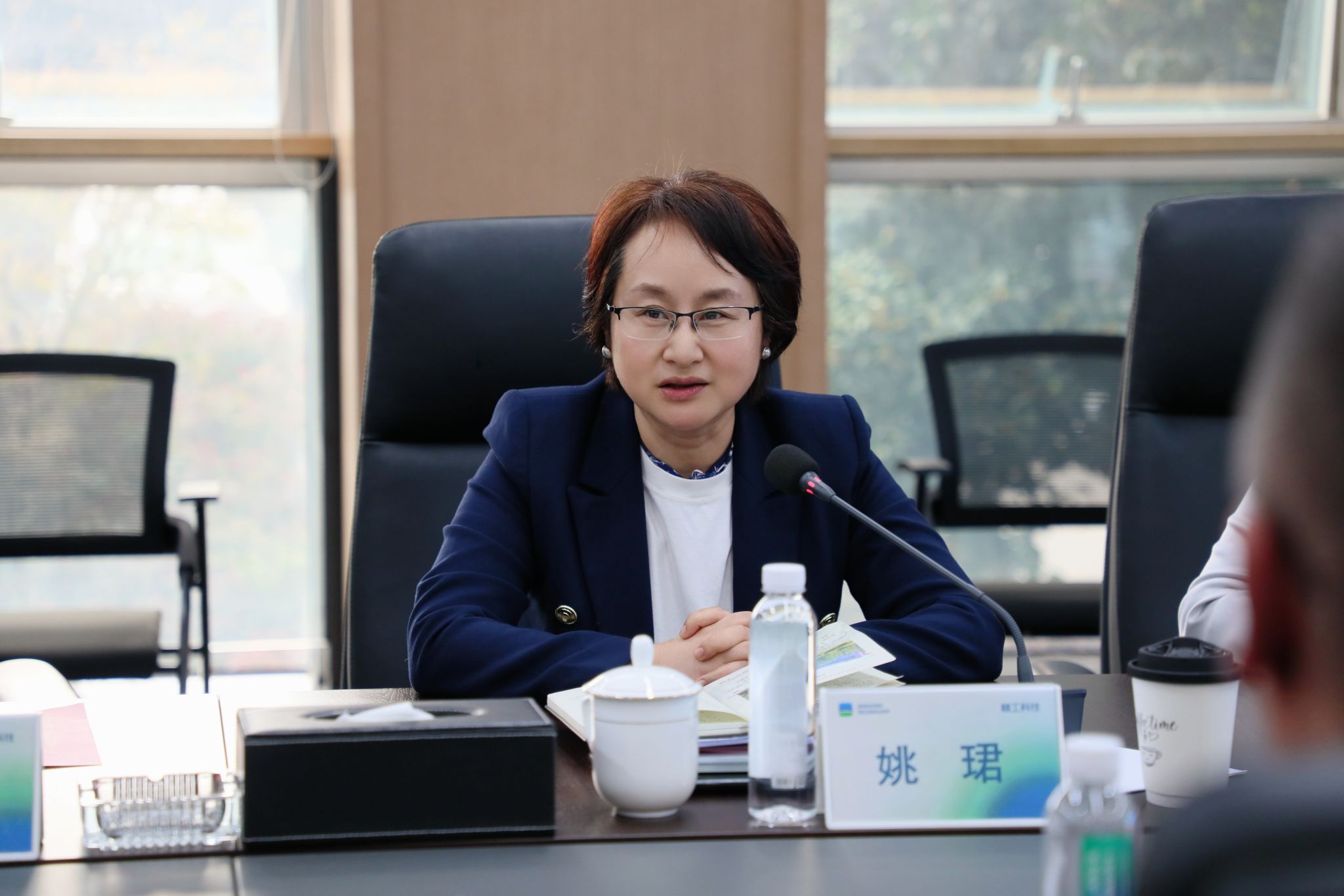 姚珺就精工科技对于学校教育事业发展给予的支持和关心表示衷心感谢。她基于校企双方合作交流的再深入、再拓展、再加强提出三点期望:一是以“党建筑基”共育时代新“才”。打破高校育人与企业用才壁垒,优化高层次人才联合培养方案;二是以“协同攻坚”聚焦课程、师资、平台核心,合力推进核心技术攻关与新材料产业升级;三是以“生态融通”构建教育科技人才一体化创新生态,为“创新浙江”注入动能。