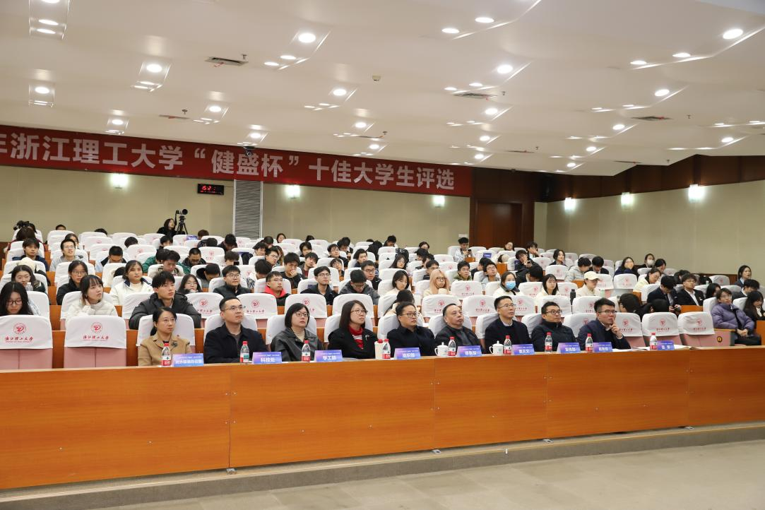 11月19日下午,浙江理工大学2025年“健盛杯”十佳大学生评选活动在下沙校区行政楼二楼报告厅举行。校党委副书记缪鲁加、浙江健盛集团人力行政总监费天文出席活动,并与学校相关职能部门负责人担任评委。
