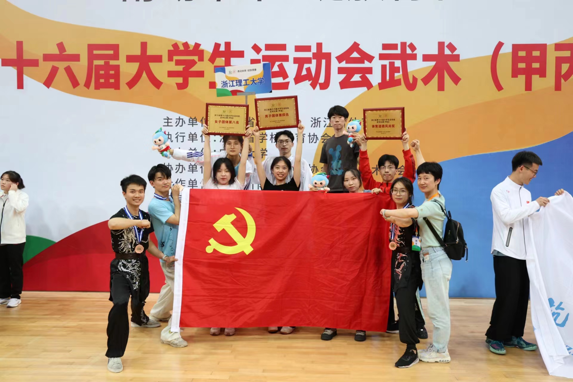 5月11-14日,2023年浙江省大学生运动会武术(甲丙组)比赛在宁波大学举行,本次比赛由浙江省教育厅、浙江省体育局主办,宁波大学承办,共有来自全省38所本科院校的48支代表队、约410名运动员参赛。我校派出体军部副主任(主持工作)惠悲荷老师为领队,尹燕强、杨乃静老师为教练,10名运动员的阵容参赛。