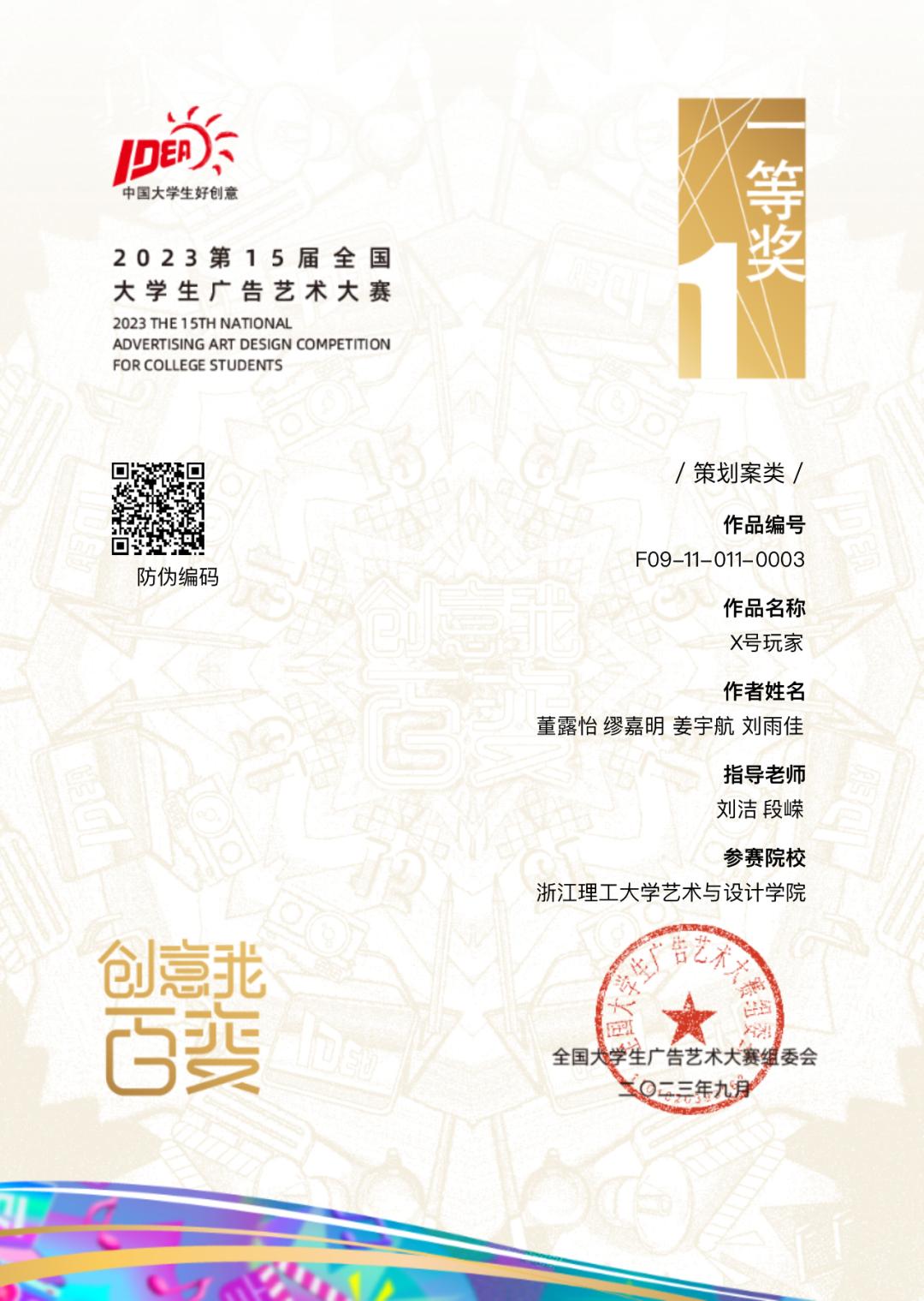 我院数字媒体艺术系刘洁、段嵘老师指导的《X号玩家》团队(参赛学生:董露怡、缪嘉明、姜宇航、刘雨佳)作品在决赛现场以557分的成绩拿下国赛一等奖的好成绩,这也是我校自2008年参赛以来第一次摘得该类别国赛一等奖的奖牌。