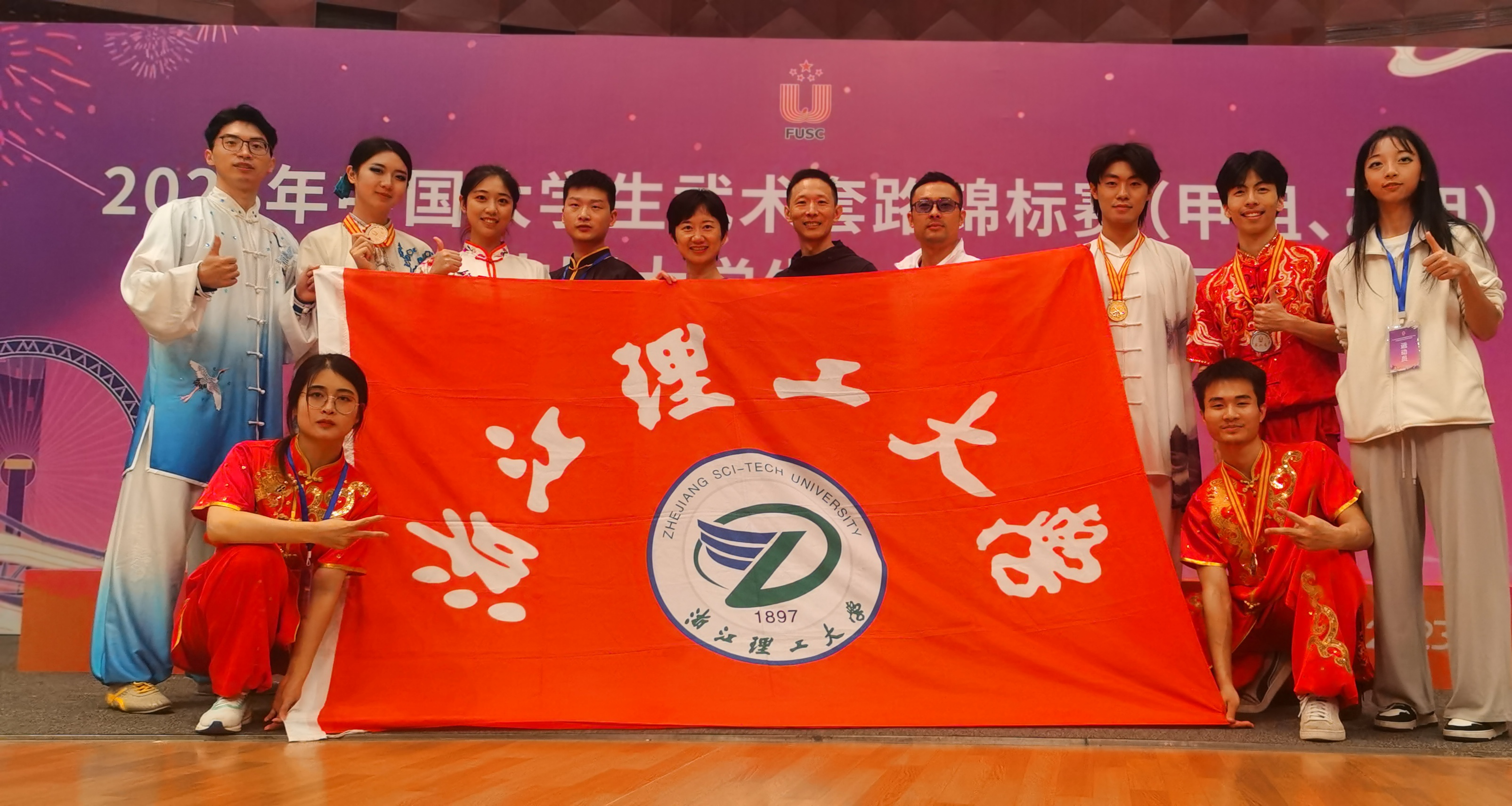 本次比赛,我校武术队健儿们秉持“为校争光、顽强拼搏、团结协作、友好交流”的宗旨,在赛场上阳光自信、无惧挑战,挥洒汗水、奋力拼搏,大力弘扬了勇敢坚毅的中华体育精神,展现了新时代浙理人积极向上的精神风貌。最终,队员们凭借出色的技术能力与良好的心理素质获得1金、2银、2铜,6个第四,1个第五,两个第六,1个第七,三个第八及男子团体总分第七名的佳绩。其中纺织科学与工程学院宋凯斩获男子太极刀金牌,纺织科学与工程学院夏萌远和经济管理学院李根分获男子八卦拳、男子杨式太极拳银牌。建筑工程学院韩俊龙被评为优秀运动员。
