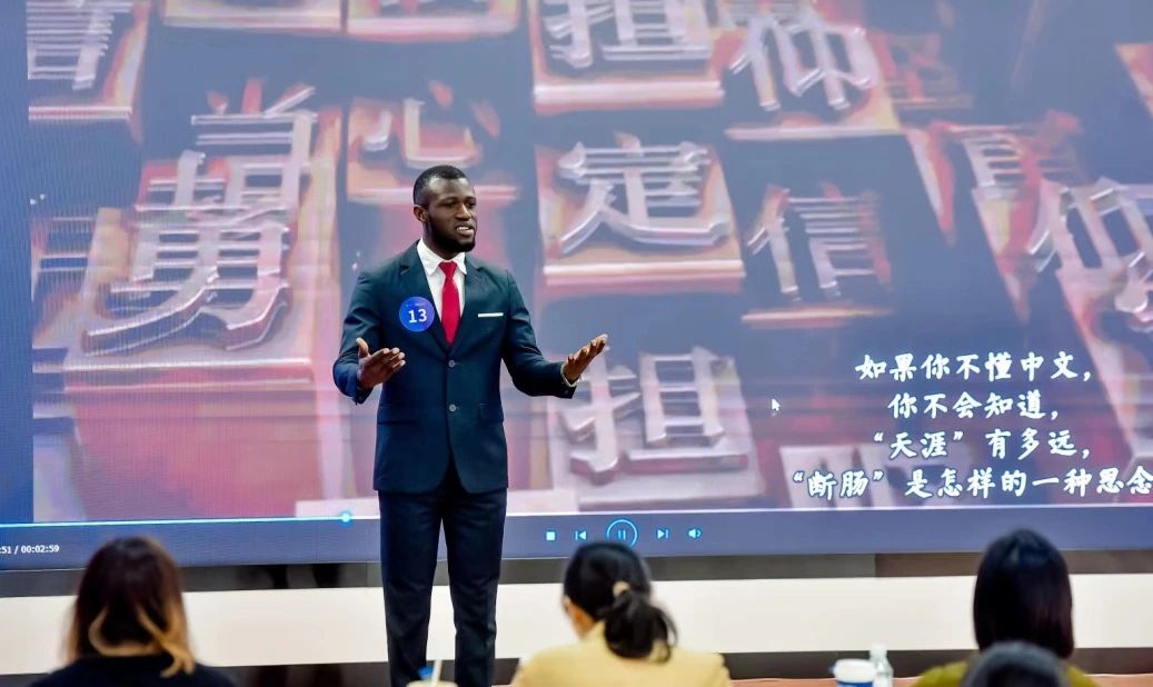 浙江师范大学来自刚果(布)的Houakazolo Ketivi Lornede同学在作品《中文有多美》中满怀激情地表达了国际学生对中文的喜爱。