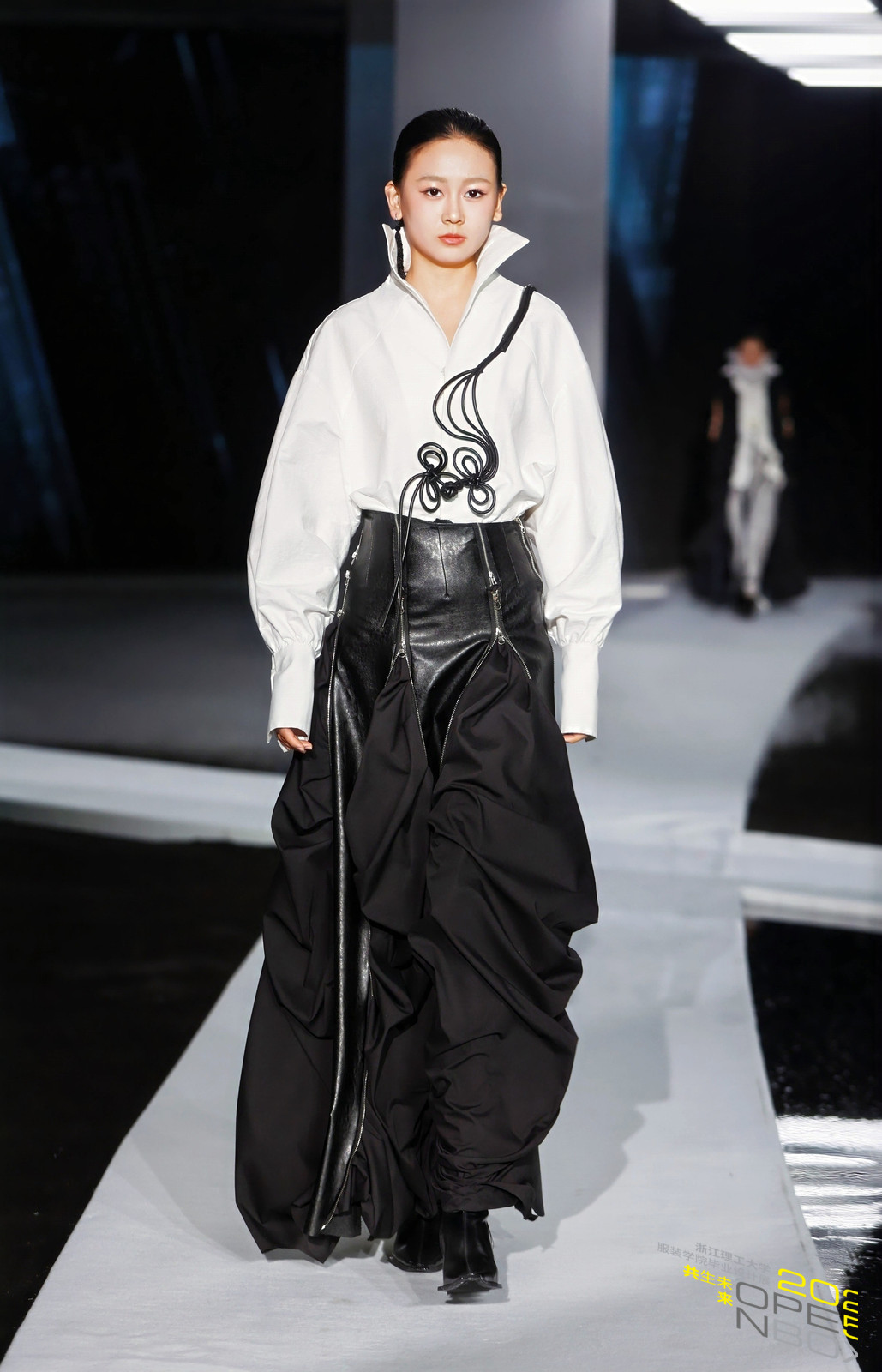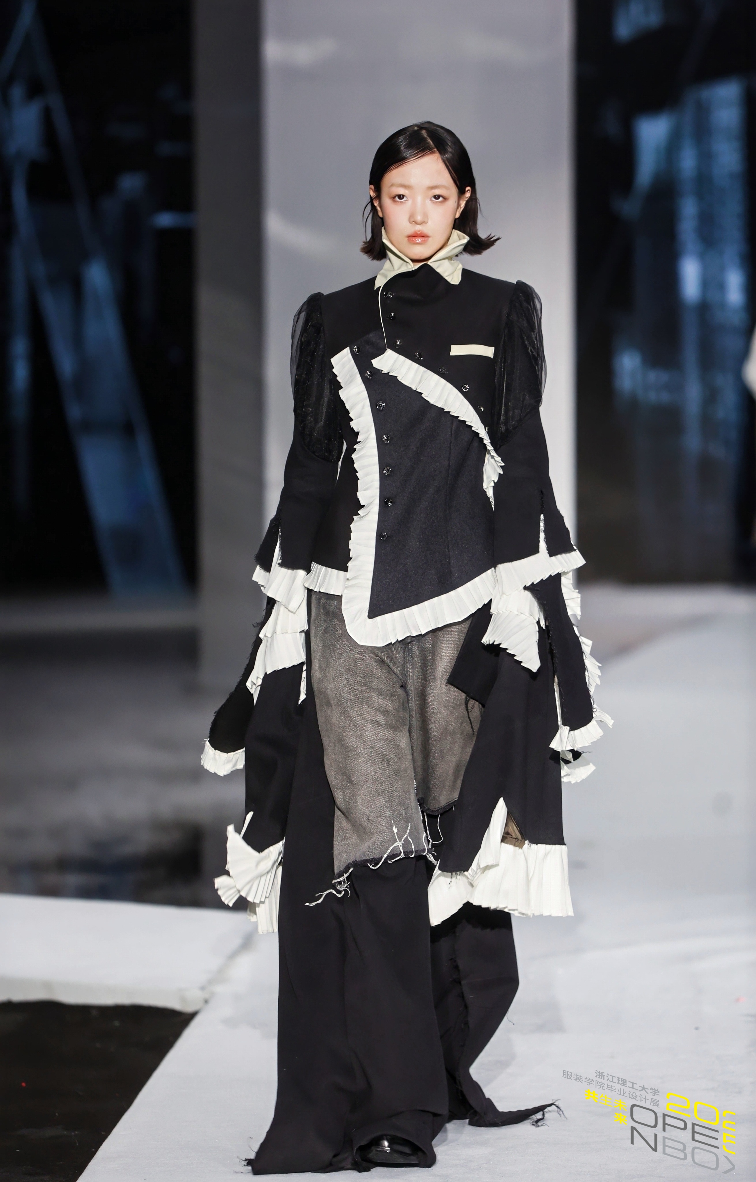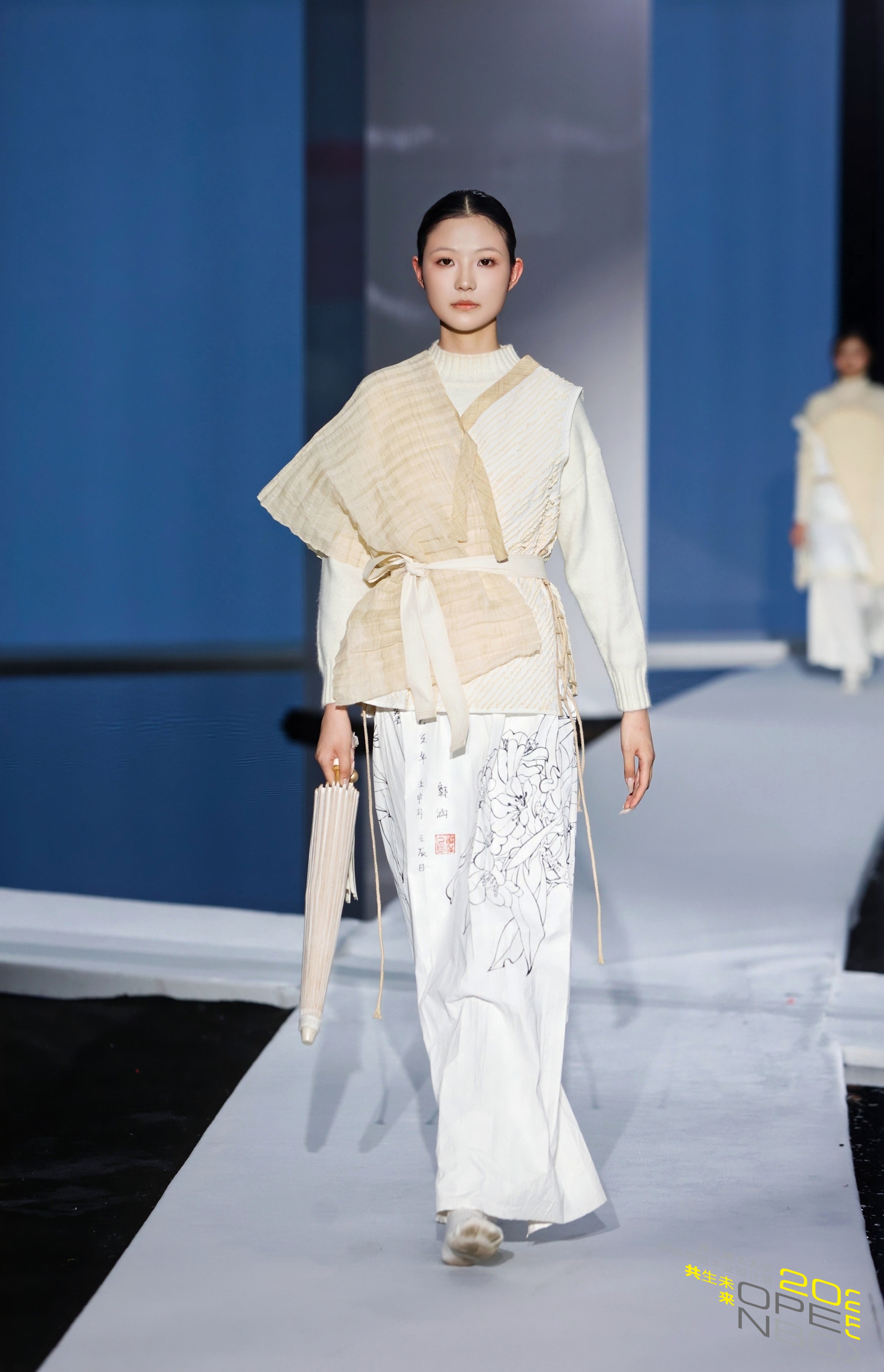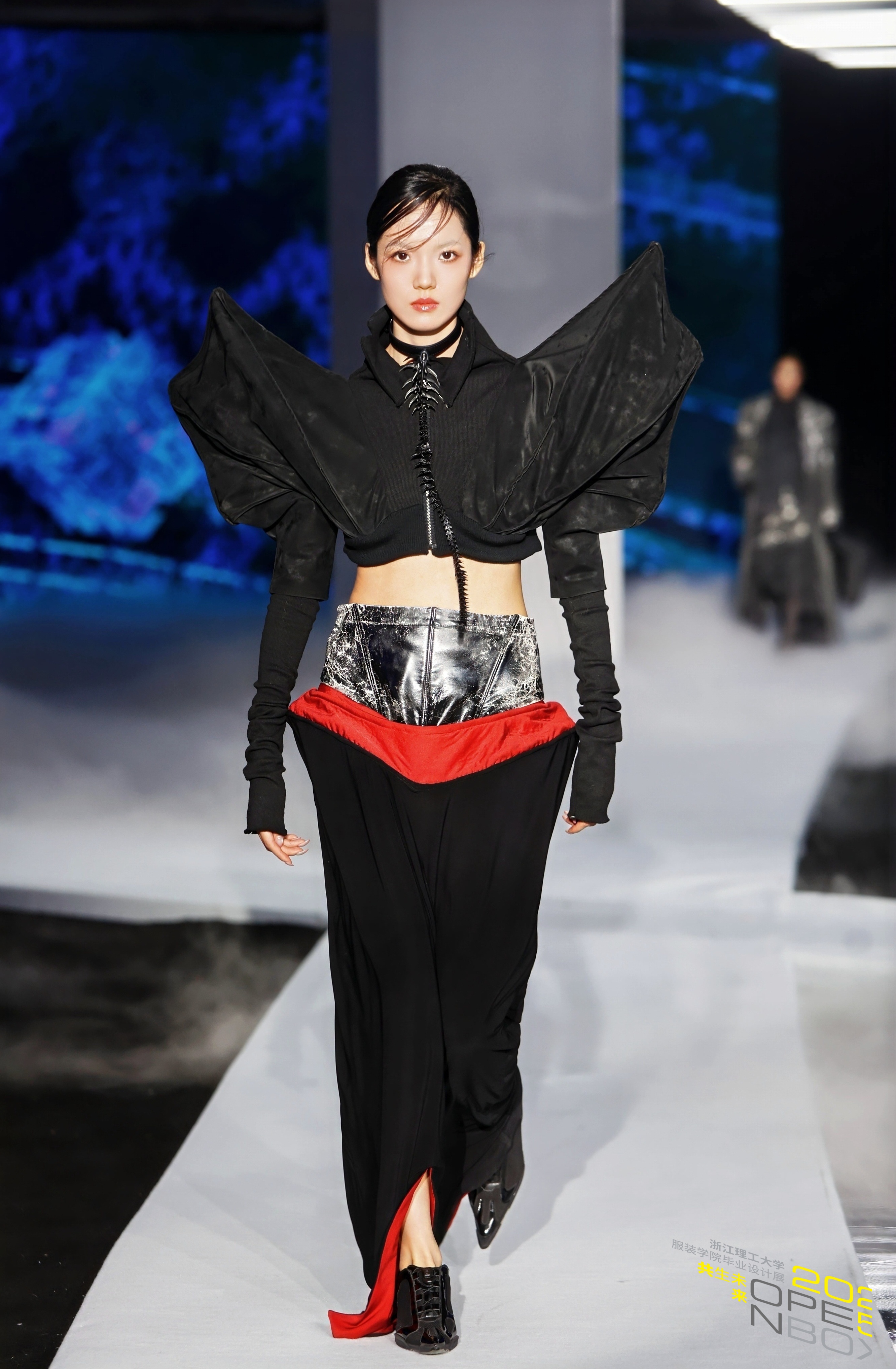 “共生未来”重新诠释“Open Box”的实践学习——通过突破传统设计边界,在技术、生态与消费需求的共生网络中探索服装的多元价值。设计师们将“开箱”转化为设计创新的思维起点,从布料的重组到“物感”与“人感”的融合,服装学院学子用作品诠释设计创造未来共享生态的无限可能。