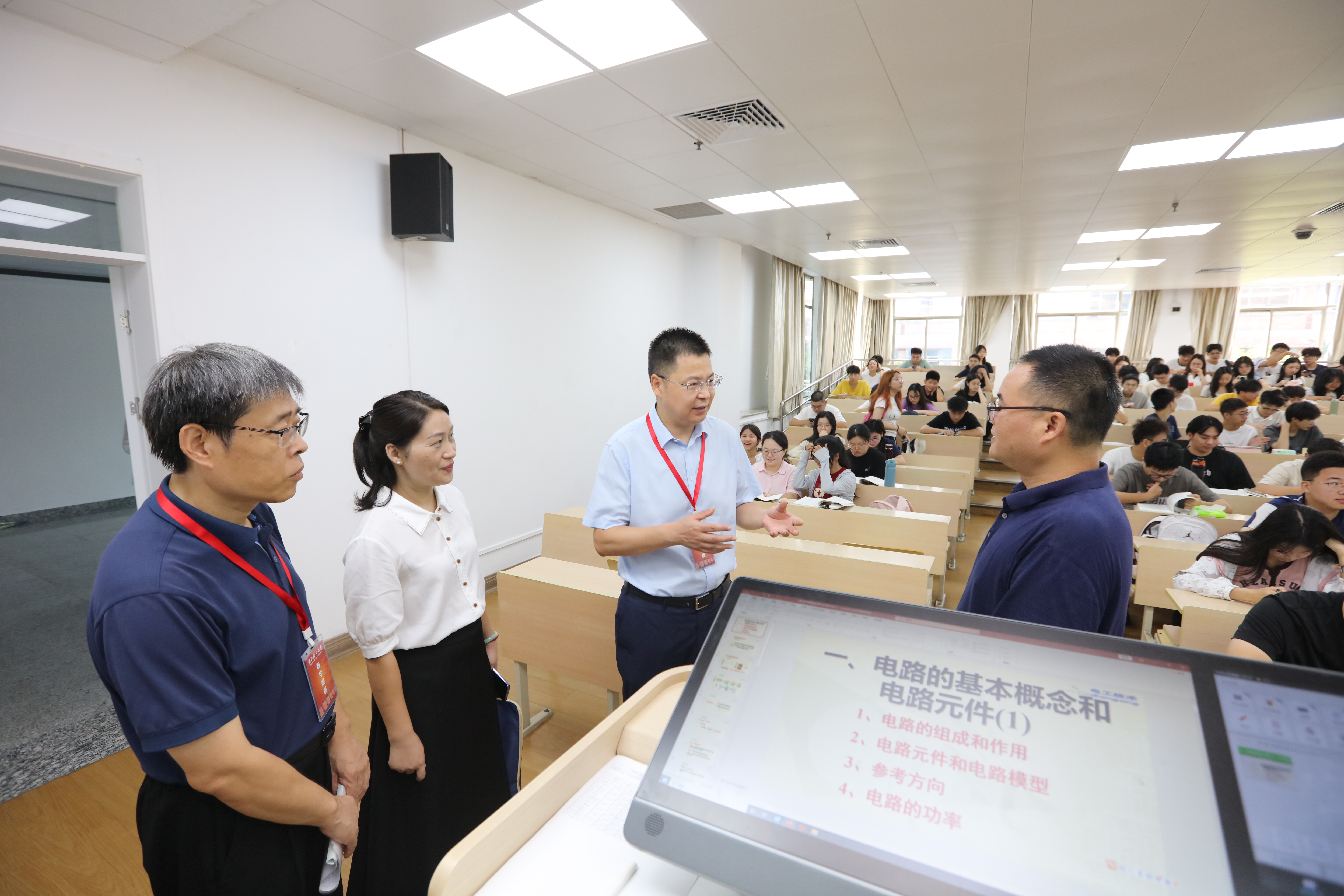 在2N219教室,赵全军仔细询问信息科学与工程学院杨涛老师《电工电子技术》本学期的课程安排,考试内容、学生情况等问题。聚焦AI赋能基础教学新生态,赵全军重点关注人工智能技术与基础课程的融合路径,指出人工智能不是简单的工具叠加,而是要重构知识体系。他强调,人工智能教育需贯穿“基础课程筑基、专业课程融合、交叉学科创新”全链条,构建“技术赋能教学—场景验证理论—产业反哺创新”的可持续发展生态。为支撑AI教学改革,学校于暑期完成下沙校区51间公共教室教学设备升级改造,走访中,赵全军查问讨论室等智慧教室的规模,要求硬件更新与数据互通要同步进行,尽快实现“教—学—管”全流程数字化。